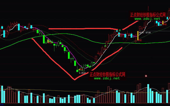 圓弧底形態是由于持倉人不愿割肉,多頭也不愿意介入,價格陷入膠著的一種盤整形態,多出現在價格底部區域,是極弱勢行情的典型特征。其形態表現在K線圖中宛如鍋底狀。