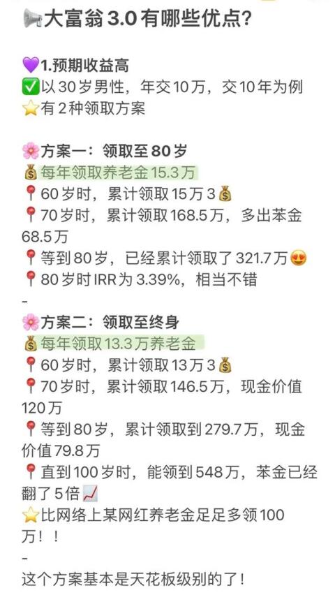 3.大富翁3.0年金險則以其市場綜合實力最強而備受矚目。這款產品不僅提供終身或定期領取選項,而且最早可以在40歲開始領取,其現金價值能夠持續終身,為投保人提供了極高的靈活性和穩定性。