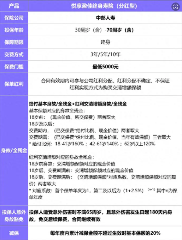 《中郵悅享盈佳終身壽險(分紅型):亮點與價值分析》