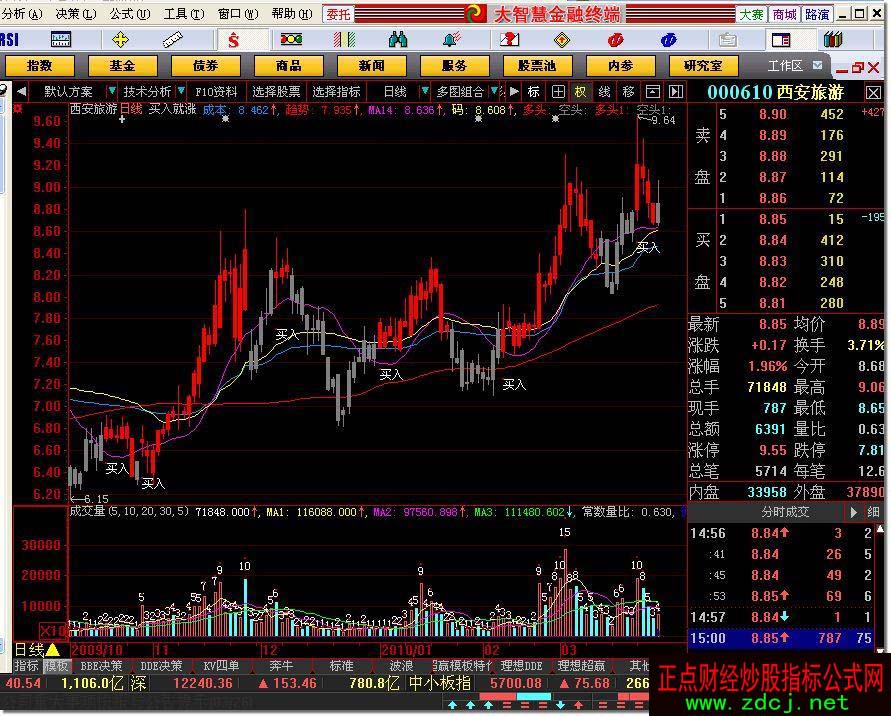 大智慧抄底逃頂買入就漲指標公式主圖實例圖解: