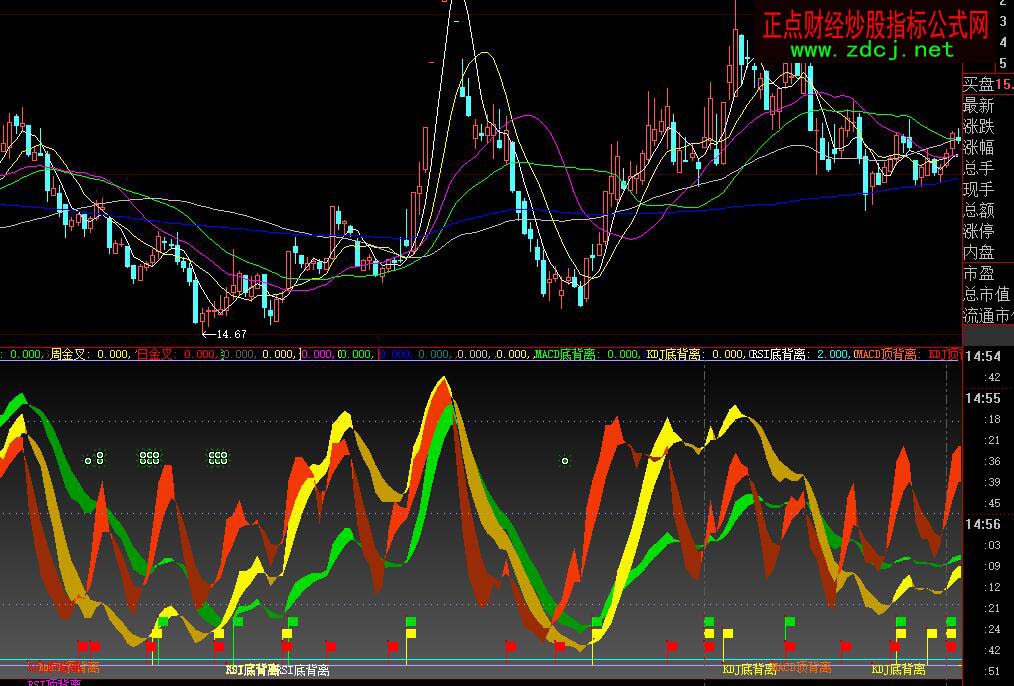 大智慧RSIKDJMACD日周月底背離金叉指標(biāo)公式實(shí)例圖解: