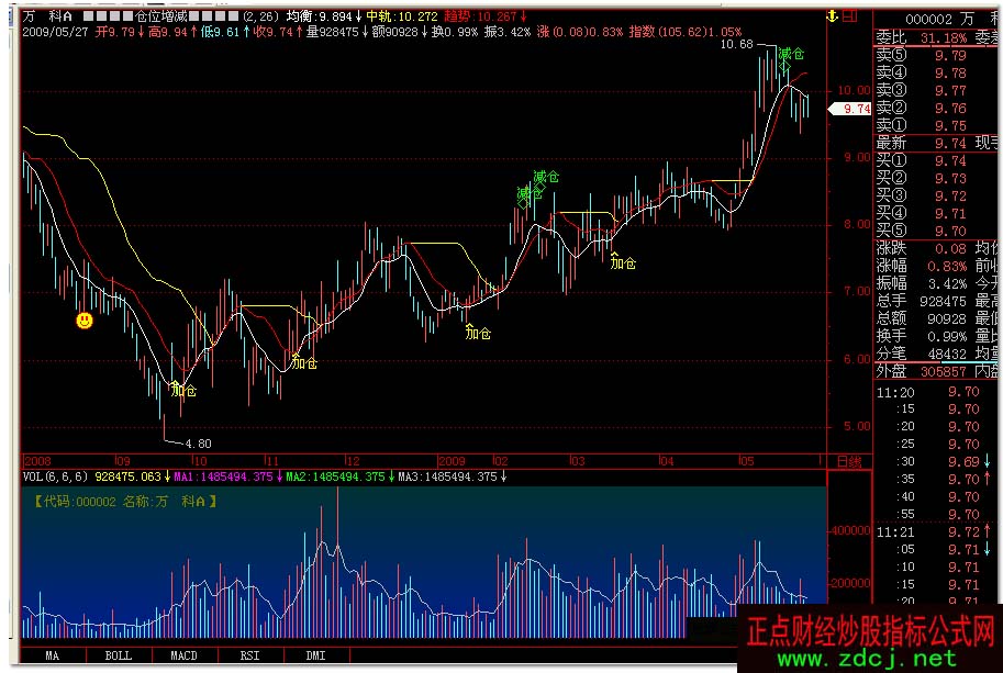 DRAWTEXT(CROSS(84,var7),H*1.035,'減倉'),COLOR00FF00 ;