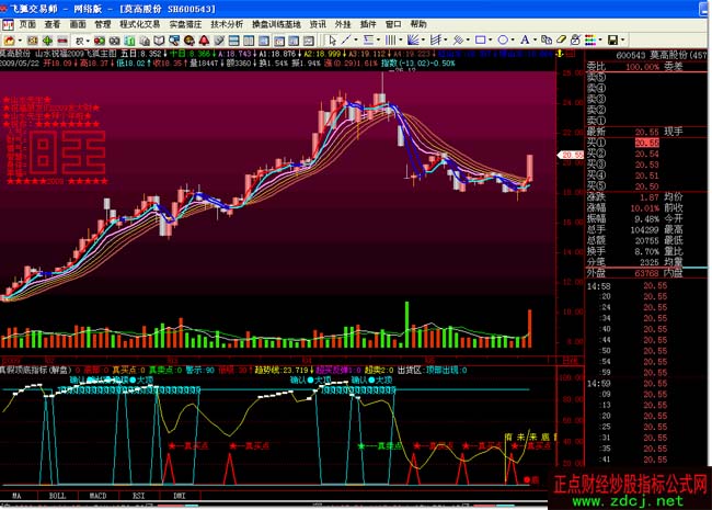DRAWTEXT(LLV(DX,2)=LLV(DX,7) AND COUNT(DX<0,2) AND CROSS(DX,MA(DX,2)),39,'★--真買點'),colorFF;