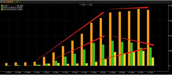 從2018年之后,宏橋的總資產(chǎn)基本保持平穩(wěn),產(chǎn)能也不在大幅擴張,取而代之的是持續(xù)的優(yōu)化資產(chǎn)負債表結(jié)構(gòu),負債持續(xù)下行,現(xiàn)金不斷增加,資產(chǎn)負債表的韌性逐步增強,從高杠桿的高速增長轉(zhuǎn)向了相對平穩(wěn)高質(zhì)量增長。