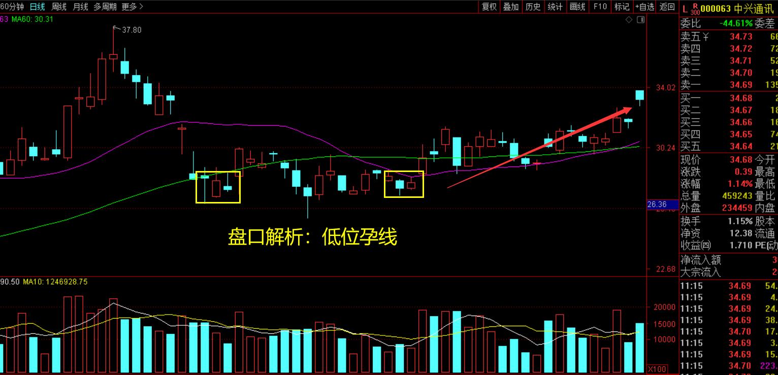 孕線經(jīng)典k線組合什么時間買入——以中興通訊實(shí)戰(zhàn)為例