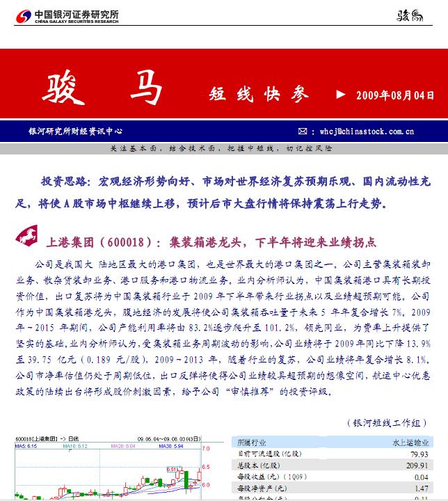 8月4日銀河證券駿馬(短線快參)