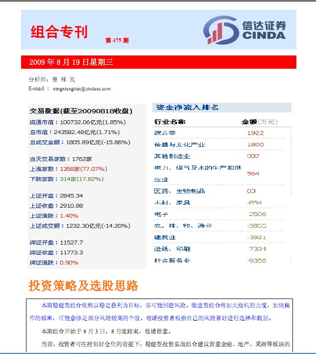 8月19日信達證券組合專刊
