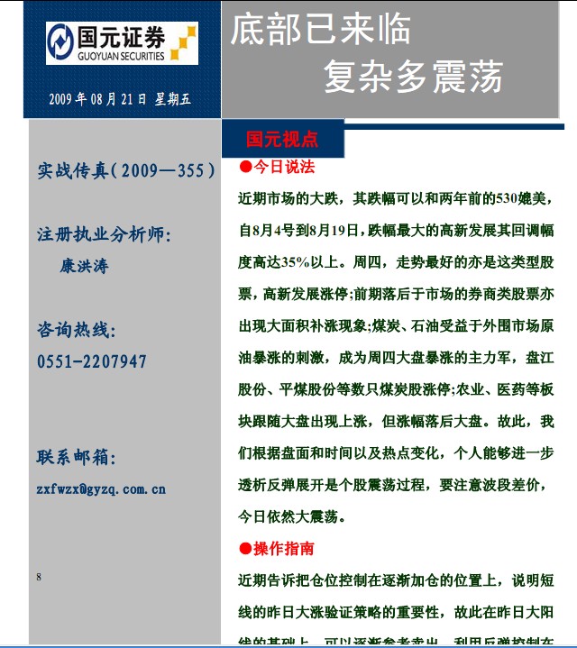 8月21日國元證券實戰傳真