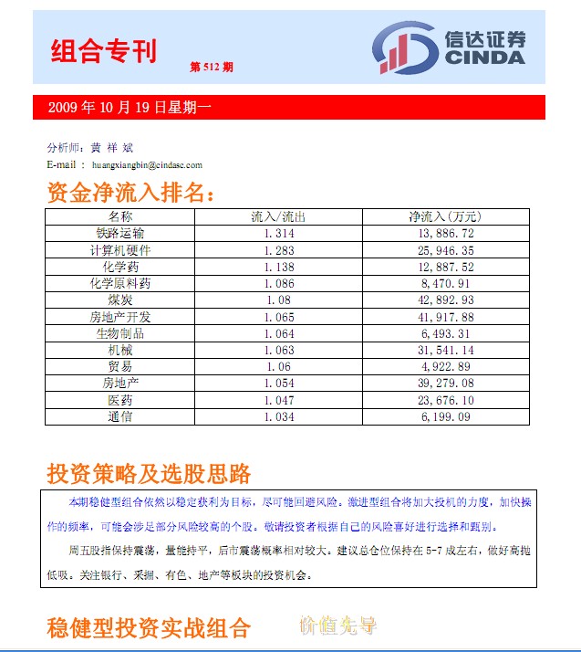 信達證券組合專刊:本期穩健型組合依然以穩定獲利為目標,盡可能回避風險。激進型組合將加大投機的力度,加快操作的頻率,可能會涉足部分風險較高的個股。敬請投資者根據自己的風險喜好進行選擇和甄別。周五股指保持震蕩,量能持平,后市震蕩概率相對較大。建議總倉位保持在5-7 成左右,做好高拋低吸。關注銀行、采掘、有色、地產等板塊的投資機會.......