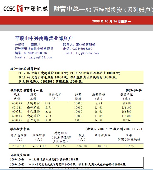10月26日50萬模擬投資(二)