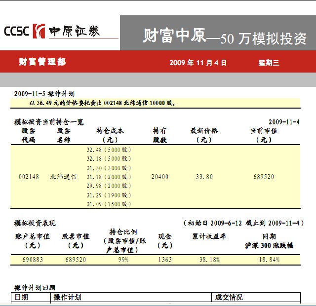 11月4日50萬模擬投資(一)