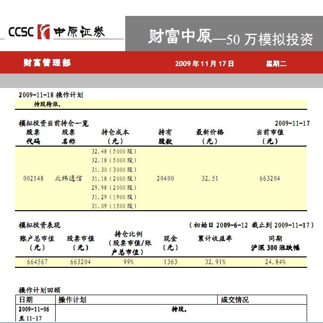 11月17日50萬模擬投資(一)