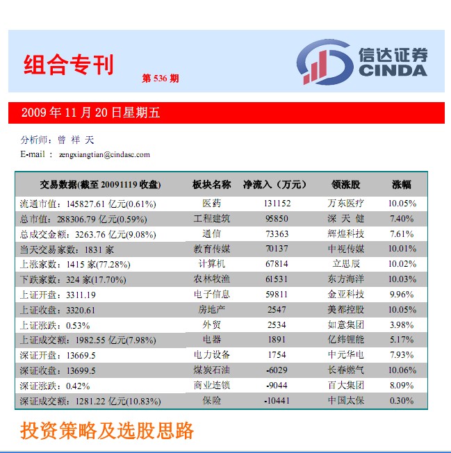 11月20日信達證券組合專刊