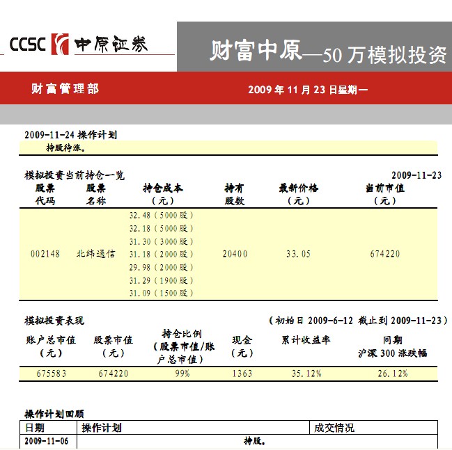 11月23日50萬模擬投資(一)