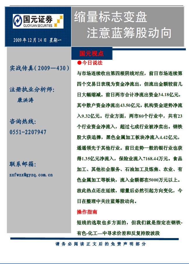 12月14日國元證券實戰傳真