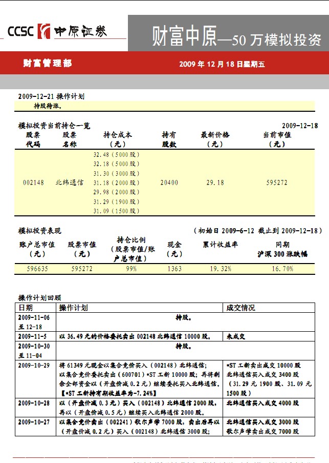 12月18日50萬模擬投資(一)