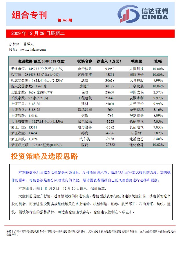 12月29日信達(dá)證券組合?