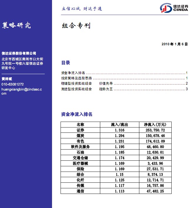 1月6日信達證券組合專刊
