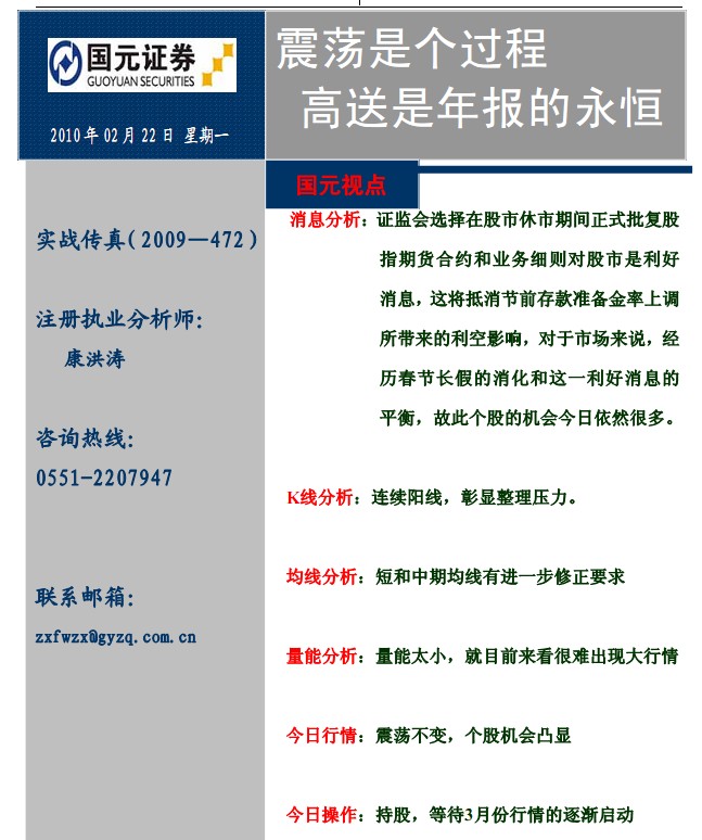 2月22日國(guó)元證券實(shí)戰(zhàn)傳真