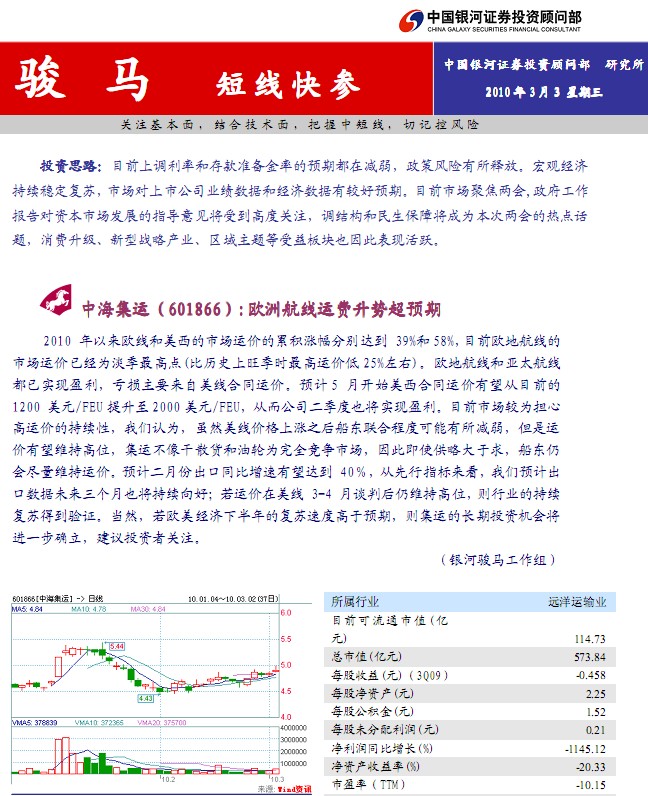 3月3日銀河證券駿馬(短線快參)