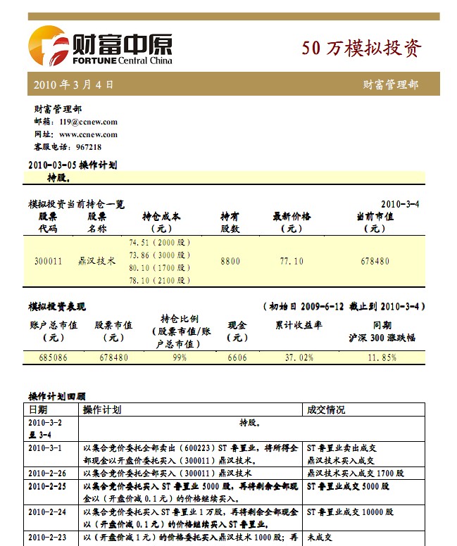 3月4日50萬(wàn)模擬投資