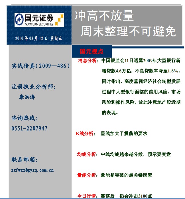 3月12日國(guó)元證券實(shí)戰(zhàn)傳真