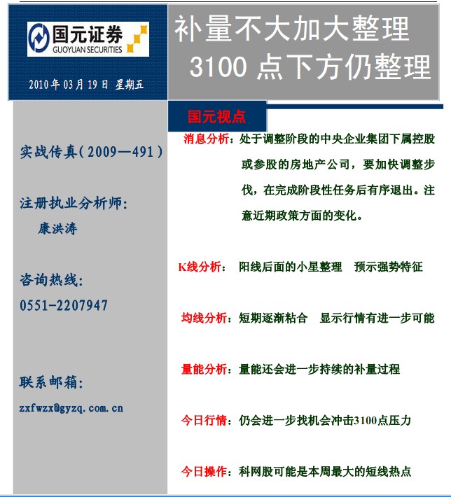 消息分析:處于調整階段的中央企業(yè)集團下屬控股或參股的房地產公司,要加快調整步伐,在完成階段性任務后有序退出。注意近期政策方面的變化。 K線分析: 陽線后面的小星整理 預示強勢特征 均線分析:短期逐漸粘合 顯示行情有進一步可能 量能分析:量能還會進一步持續(xù)的補量過程 今日行情:仍會進一步找機會沖擊3100點壓力 今日操作:科網股可能是本周最大的短線熱點 .......