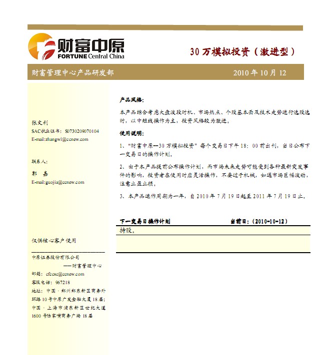 10月13日中原證券30萬模擬盤