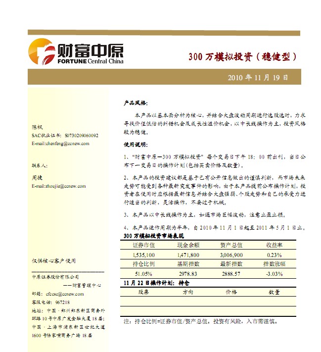 11月22日中原證券300萬模擬盤