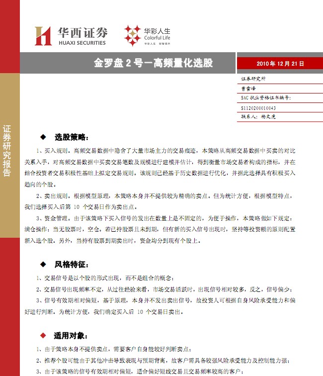 12月21日華西證券金羅盤2號