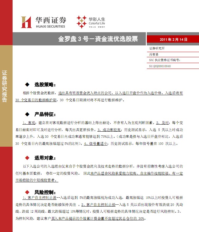 2月14日華西證券金羅盤3號