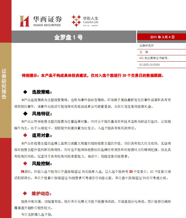 3月4日華西證券金羅盤1號
