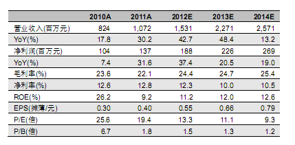 3Q12 公司營收、凈利分別同比增長51%、73%,主要系福建泰興特紙有限公司85%權(quán)益于7 月實現(xiàn)并表,大幅增厚業(yè)績。2Q12、3Q12 公司少數(shù)股東損益分別為89 萬元、497 萬元,假設(shè)3Q12 少數(shù)股東損益增量完全由福建泰興并表貢獻,推算3Q12 公司原有業(yè)務(wù)凈利潤同比增速在15%左右,相比1H12 約5%的凈利增速,預(yù)計公司原有業(yè)務(wù)盈利增長有所改善。