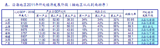 中期能源趨勢:沿海地區(qū)將最先感受到能源結構變化沿海經(jīng)濟發(fā)展進入后工業(yè)階段,能源需求增速放緩