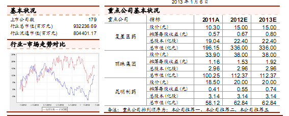 事件:1 月6 日,國務院發布關于印發生物產業發展規劃的通知。生物產業是國家確定的戰略性新興產業之一, 2011 年我國生物產業實現總產值約2 萬億元,年均增速22.9%,其中生物醫藥是重要組成部分。此次生物產業規劃明確發展生物產業的指導思想、基本原則和發展目標,并提出重點領域、主要任務以及保障措施。我國生物產業發展的中長期目標包括:到2015 年,我國生物產業形成特色鮮明的產業發展能力,對經濟社會發展的貢獻作用顯著增強,在全球產業競爭格局中占據有利位置。到2020 年,生物產業發展成為國民經濟的支柱產業。具體目標包括:結構布局更加合理。