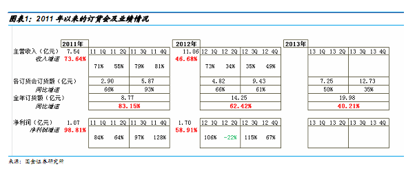 公司同時公布了 2013 年秋冬訂貨會數據:期貨訂單額累計達12.73 億元,同比增長35%;2013 年春夏及秋冬訂貨會總計訂貨額19.98 億元,同比增長40.21%。