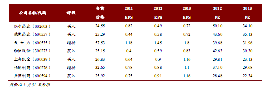 城鎮化促使我國縣級醫院發展"大提速"。被城鎮化人口增加使城鎮醫保籌資額大幅增長;被城鎮化人口可支配收入大幅增長提高其醫藥支付能力;對于未來沒有被城鎮化人口,新農合籌資額將逐年增加; 對于未被城鎮化的農民,新農合報銷比例增加有利于其在縣級醫院消費。我們認為:2012 年醫藥終端增長率約為18%;2012 年我國縣級醫院藥品市場規模約1399 億元,每年我國新增城鎮化人口帶來縣級醫院市場容量增長226 億元,使縣級醫院藥品容量新增率約17%; 因此未來3 年我國縣級醫院藥品市場容量復合增長率約35%。
