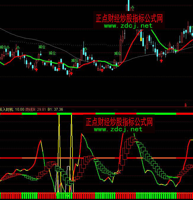 STICKLINE(防線B>0 AND 防線B-B1<=0,11,4,2,0),COLOR00FF00;