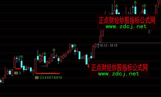 DRAWTEXT(BARSLAST(單陽)=6 AND 單陽不破,低不破價*0.98,'6'),COLORGREEN;