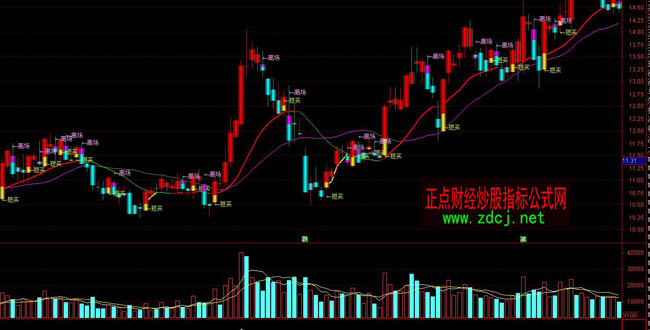 DRAWTEXT(品紅離場,REF(CLOSE,1)+0.1,'←離場'),COLORFF99FF;