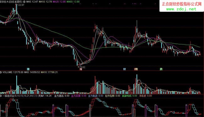 通達信天知一路追資金沖擊波指標公式實例圖解: