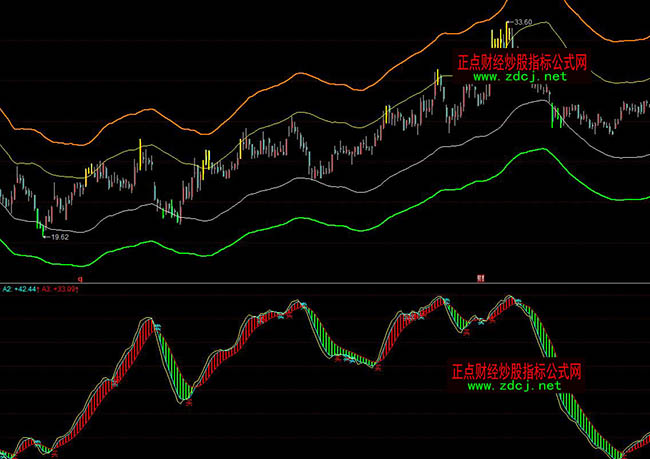 STICKLINE(A2<=A3,A2,A3,3,0),colorgreen;