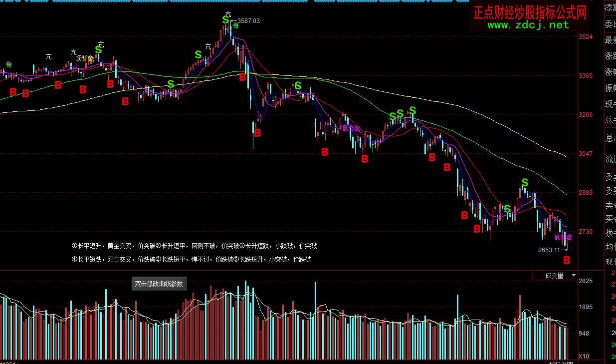 DRAWTEXT_FIX(ISLASTBAR,0.37,0.95,0,'①長平短跌,死亡交叉,價跌破②長跌短平,彈不過,價跌破③長跌短升,小突破,價跌破');