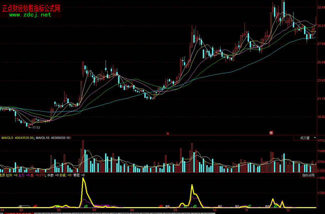 主力:IF(VAR28>0.1,VAR29,0)*5,LINETHICK1,COLORFF00FF;