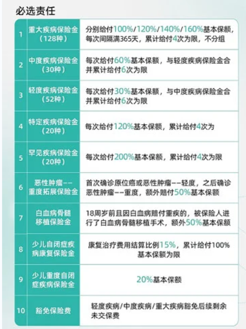 特疾/罕見病保障:20種特疾賠4次,每次賠120%保額;20種罕見病賠4次,每次賠200%保額。