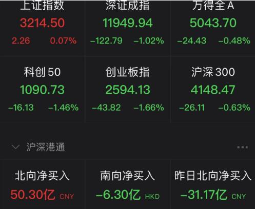 3月28日,滬指收漲0.07%,北向資金凈流入超50億元。截至收盤,上證指數報3214.5點,上漲2.26點,上漲0.07%,成交額3744.72億元;深證成指報11949.94點,下跌122.79點,下跌1.02%,成交額4959.14億元,兩市合計成交額8703.86億元;創業板指報2594.13點,下跌43.81點,下跌1.66%,成交額1803.33億元。